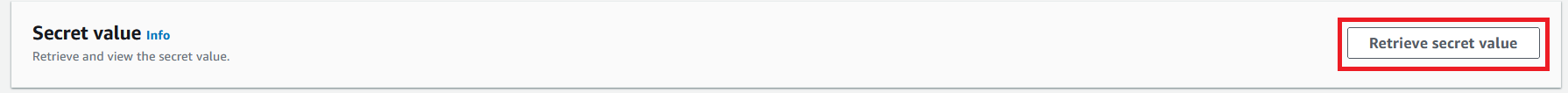 5. Retrieve secret value를 클릭해서 username과 password의 값들을 메모합니다.